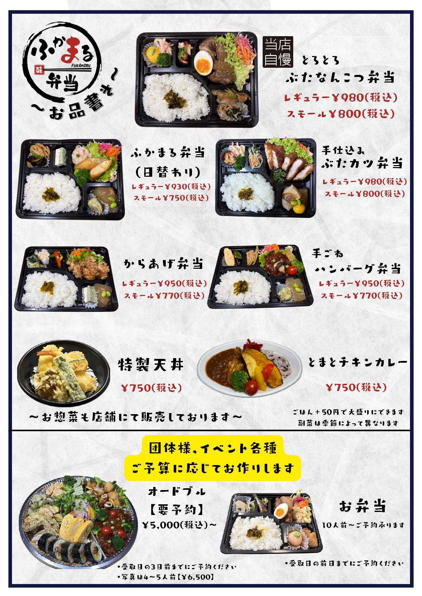 ごはんというのはお腹を満たすだけじゃなく、人と人をそっとつないでくれるものだと思います。忙しくてゆっくり手作りができない日でも、誰かのためにお弁当を買って帰る。その気持ちひとつで、きっと仲も絆も深まっていく。そんな瞬間に、ふかまる弁当が寄り添えるお店でありたいです。